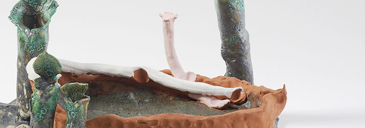 Aaron Angell, born in Kent (UK) in 1987, works primarily with ceramics, producing sculptural tableaux referencing hobbyist cultures, naturalistic forms, and the underground hand-built ceramics of Britain from the 1970s and '80s. Although often appearing deliberately amateurish, Angell utilises a highly skilled production process for his sculptures, making use of glazing techniques that are both antique and state-of-the-art. Angell is founder of the Troy Town Art Pottery in London, a radical and psychedelic ceramic workshop for artists.