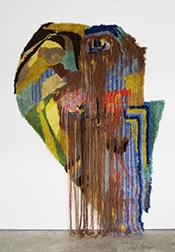 Caroline Achaintre, born in Toulouse (FR) in 1969 and brought up in Nuremberg (DE), lives and works in London. She works across a diverse range of media that includes textiles, ceramics, prints and watercolours, using techniques typically associated with the applied arts. Her work is colourful and potent, evoking the subversive spirit of Carnival and creating an atmosphere that is simultaneously playful and absurd. Citing German Expressionism, post-war British sculpture and Primitivism as influences, her work also makes reference to more contemporary sub-cultural strands of sci-fi, the Goth-metal scene, psychedelia and horror films.