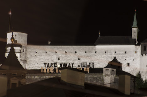 Constanta Dohotaru from Romania is preparing a project she calls Takeaway. She has built two-meter high letters that she will use to project the word ‘takeaway’ onto the Festung Hohensalzburg at night. She is convinced that Salzburgers are avoiding the Altstadt. “With all its tourists’ places they don’t own it anymore. This new fake city is a perfect baroque décor for this ephemeral presences.” Her installation will be visible from most of the city. It does not question tourism per se, but the protocols and routines in which tourism works in Salzburg.