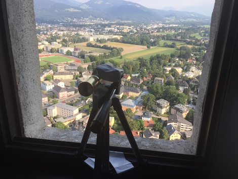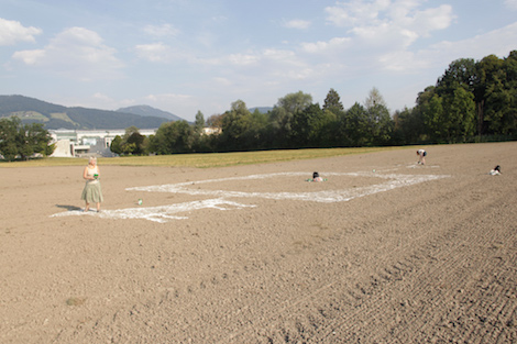 “The place was important for variety of reasons: it is visible from all around the castle, from all the tourists telescopes as well as from window of our studio. Secondly, there is a main walking path from fortress to Hellbrun around that field. And thirdly, the place itself is very pretty, with nice view from the fortress and there is a football field right next to it. With all those lines it somehow reminds me of a drawing. And of course, it is about a correct distance for the telescope.”