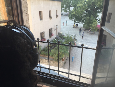From the window you could see the tourists visiting the Festung. The sounds of the installation turned the idyllic view on the court into another zoological experience. You instinctively connected certain sounds to the movements of passing tourists. Again the strong immersion of a zoological voy.eurism is activated and transgressed. Not only become the tourists figures of an animalistic spectacle, they at the same time remind us as viewers of our own zoological voy.eurism. Both pieces create a self-reflexive observation that poses the question how the construction of a gaze changes what you are looking at.