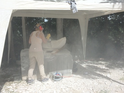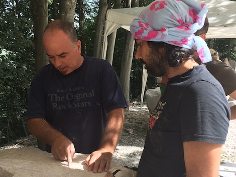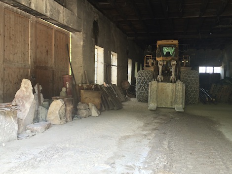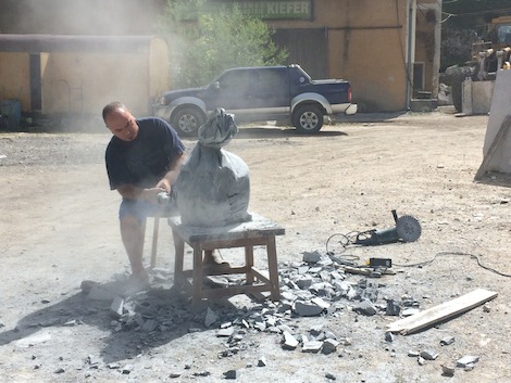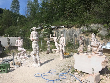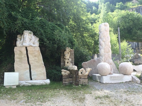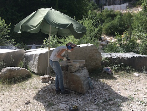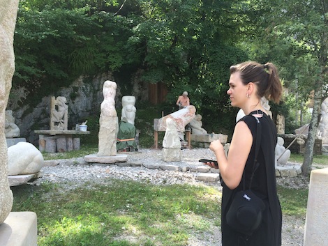 After passing by the beautiful scenery with small houses, we arrived to Fürstenbrunn. Students of this class live and work together in the space for the period of a month. They wake up, have coffee, use the flex to shape the stone, make sketches, look up to the mountains, hammer the stone; gather around the grill, have drinks during deep conversations or just chat a little, get drunk, dislike each other or maybe make out...As one of them said the other day: the Quarry is kind of like the art version of the reality show Big Brother – well, exaggerating of course.