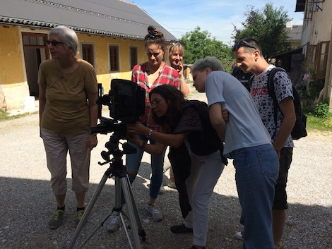 Jouve introduced a camera to the class, which she calls "archaic way of making picture." The camera is so simple: "one optic, one film and a space in between." As the camera allows playing with angles, the perspective and the feeling of the space change incredibly.