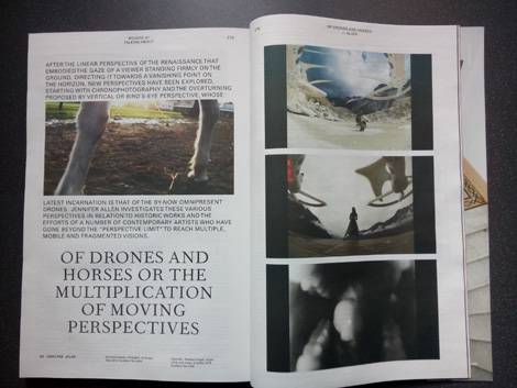 On Thursday, March 19 at 7 p.m., Jennifer Allen holds a lecture on a "Portrait of the city as an artist. Post-Internet art in public" at Kunst-Werke in Berlin. Her latest article "Of drones and horses or the multiplication of moving perspectives" is published in the Feb/March issue of Mousse Magazine.