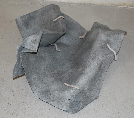 Above ↑ we see a testpiece, Birke Gorm worked 4 days on it. During the course Birke got faster. She sculpted plaster cast forms for the worm-doodles, then she cast them in cement as models, then she sculpted doodles out of stone. During the work her left hand ring finger got numb and fell alseep from the hammer vibrations. The + and the - in the title "+/- Or To See If A Pen Works" refer to the positive and negative forms of doodles in the making.