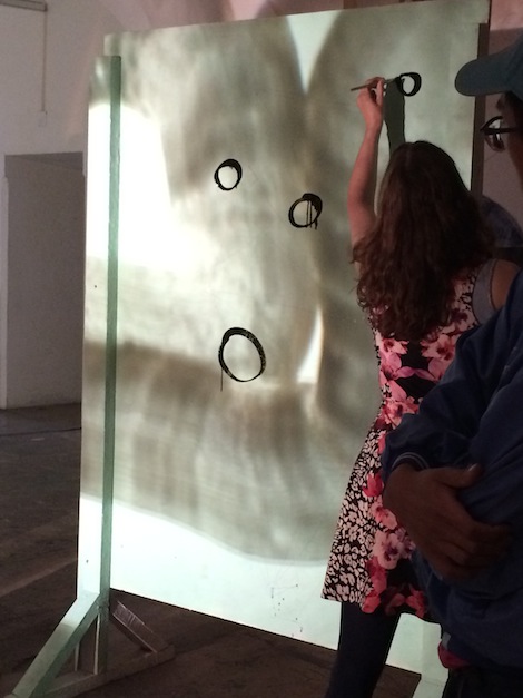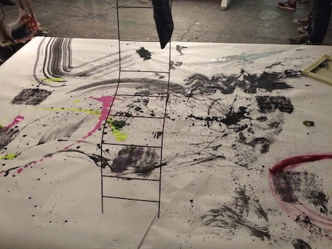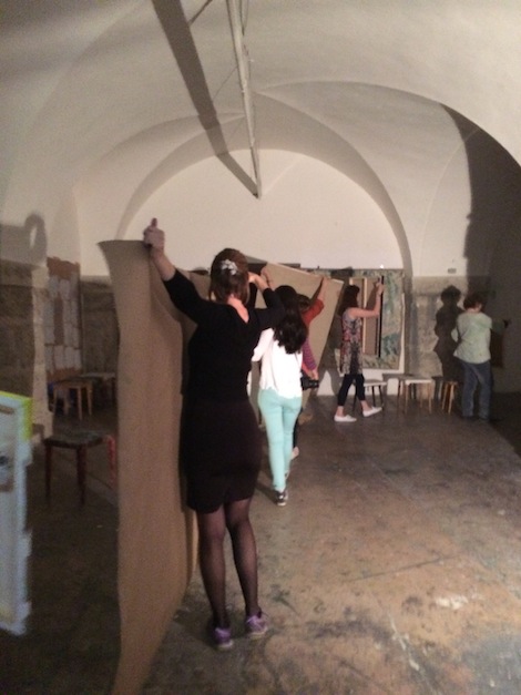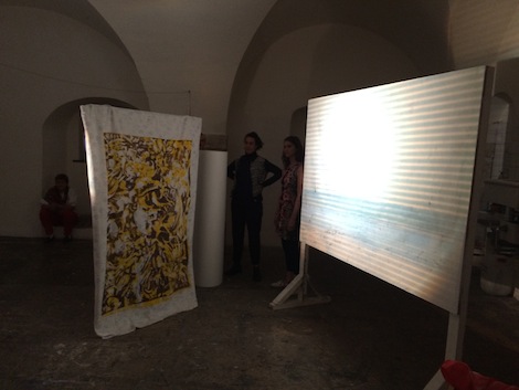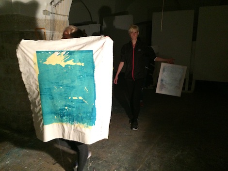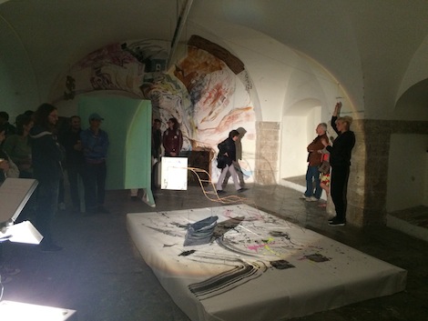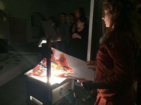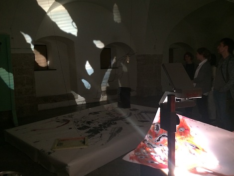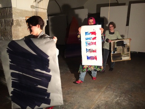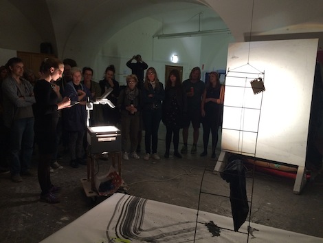 Last night, I left the Fortress around 21:30. Melissa Gordon's painting class Who am I as a Painter, In Painting, In Making? put on an impressive performance by using not only paint but also various materials such as fabric, overall projector and text... A painting was worn, objects flew away from the paintings, dots became the protagonists and other paintings were carried as if it's a beauty contest, while an artist-student was describing them with immediate word flow.
