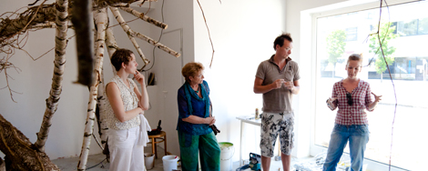 The series of studio visits continued last night, with a tour and discussion at periscope, a project space comprising work and display spaces. Two of periscope’s founders, Elisabeth Schmirl and Stefan Heizinger explained the ideas behind the spaces, and discussed how it reflects and plays a role in their own work. The idea of periscope in part stems from the tradition of studios which occasionally open to the public .