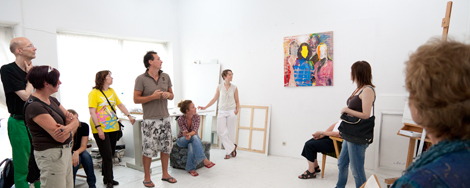 Schmirl and Heizinger also shared examples of their own work, and the way they use the space. This ranges from practical issues such as light and blank white walls for viewing their work as they produce it, to more fundamental questions of process. Heizinger in particular is interested in the process, carefully documenting the production of a piece so that the process itself becomes the artwork. Schmirl also discussed issues of process, and explained how questions of scale, and the practical limits of size, effect her choice of medium.