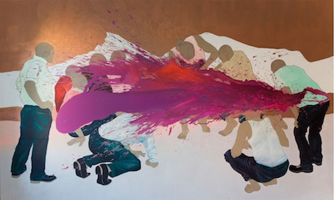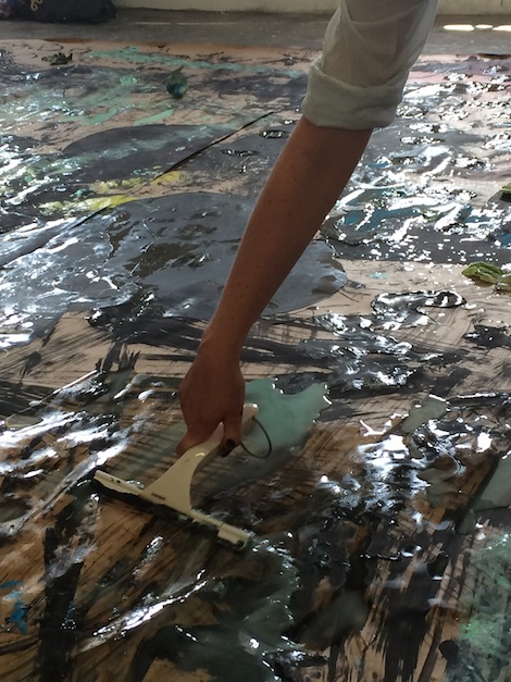 Painter Beatriz Morales, who is in Nakhova’s class, showed me a series of hers: Hidden Truth (2015-2016). Basically, Morales paints images of violence by covering the main act with a splash of paint. Another simple gesture, yet veiling something uncanny.