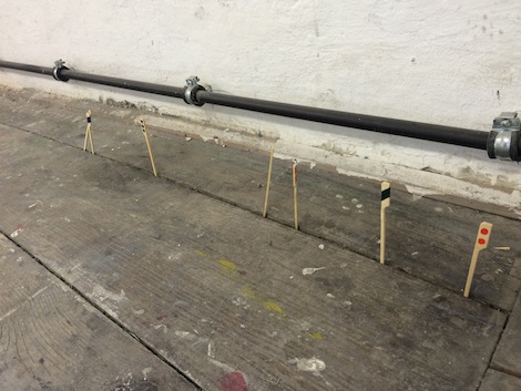 It really began with the objects, the imagery of the objects. I’ve first started with the coffee stirers I found that make quite nice markers. In my mind, I had a mental image of marks that appear on maps. From that I’ve ended up building this lexicon − a system of signs. But, it’s quite unconscious. It didn’t actually mean anything itself. From that, I thought what might be a nice idea is to start with a lexicon and trying to find a meaning.