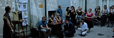 The trend of short speeches was continued, the evening turned out to be not that short though. From the inner courtyard of the Alte Saline, proceedings moved to the Café Kult in Künstlerhaus, a location that also played its part in the last weeks, then across the street to Denkmal, where the party seems to have worn on until the wee hours of the morning. Rumours even tell of a spontaneous trip to a nearby public pool, although details won't be disclosed here as we of course cannot condone such illegal behaviour.