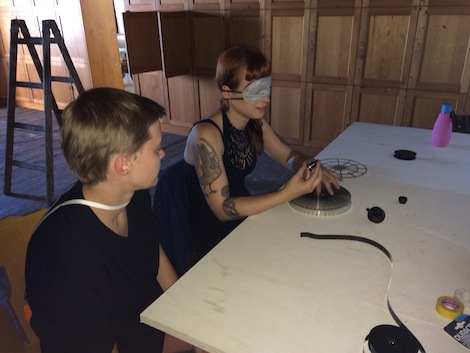 Listening to your senses carefully is crucial to work with a 16 mm film. This nostalgic medium requires attention; it’s heavy and the filmmaker should be patient to have the final solution. At the end, things might not end up as the way it's expected to be… Sounds like life, right? For instance, to learn how to roll the film in the dark, students of the class Film as a Sensitive Body have to practice with a sleeping mask. The idea is to learn how to rely on your other senses such as hearing or touch… Not to crack the film, while rolling as well as “It’s still an exciting act even after 8 years. This adrenaline makes it fun.” said the co-teacher Viktoria Schmid. Once, while working with a print film – a copy from a negative, which can be rolled under the red light, Schmid made several mistakes. She was not using her senses enough as her eyes dominated her ears.