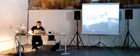 Several of Schmidl’s work spaces have had multiple functions: the studio can also be a gallery. He showed us various examples, including ideas of the studio as a work of art in its own right. In one workplace he “recreated” his apartment, to serve as both a working and display space.