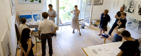 On Wednesday evening the series of local studio visits took us to the Salzburg Künstlerhaus, home of the Salzburger Kunstverein. The Künstlerhaus is one of the main centres of creative production and interaction in the Salzburg region. In association with other cultural centres, the Kunstverein provides studio space for local artists, hosts events and exhibitions, and serves as a network for artists, patrons and all those interested in the art of Salzburg.