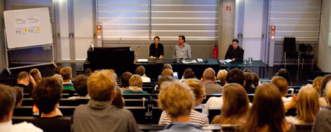 He began by explaining some of his projects and the role of functional purpose. One example was a sport and cultural centre in the Ruhr: a combination of dance and sports - “high and low culture”. The building had to be defined by the length of a football field: which means, its function determined its form. He then turned to a number of ideas and issues surrounding the interaction of architecture and social relationships, including a gallery project in Berlin, and the work of Hans Kolhoff, who made challenging designs for Potzdammer Platz before the wall came down.