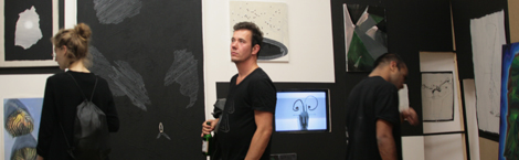 Yesterdays vernissage at the gallery Galerie 5020 saw it completely transformed. Normally a collection of spacious rooms, it had become a labyrinth, leading people around newly-constructed corners and into nooks and crannies. The effect was heightened by the droves of students, teachers and other people associated with the summer academy that had come to this opening.