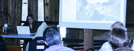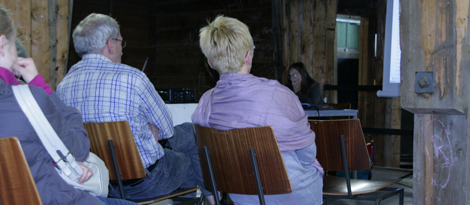 She then showed the audience different examples, like a gallery in Kiel that made an anagram out of their name Stadtgalerie(city gallery), leading to the words Edle Artist AG (noble artist CO), or a mineral water factory on the german island Sylt that adorned the roof of their art space with the words: Ich sehe nicht, was ich nicht sehe(I don't see what I don't see). For her own project on the roofs of an old coal mine in Lohberg in the Ruhrgebiet, the former industrial heart of Germany, Tanja chose the words Was bleibt ist die Zukunft (what remains is the future). But not only houses in Germany are decorated thusly, the idea has already spread as far as to the township of Soweto in South Africa and the university of Sao Paulo in Brazil.